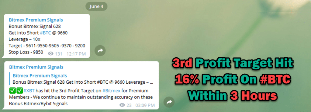 16% Profit on #BTC – Signal was posted in the Bitmex/Bybit Group – #BTC has hit the 3rd Profit Target.